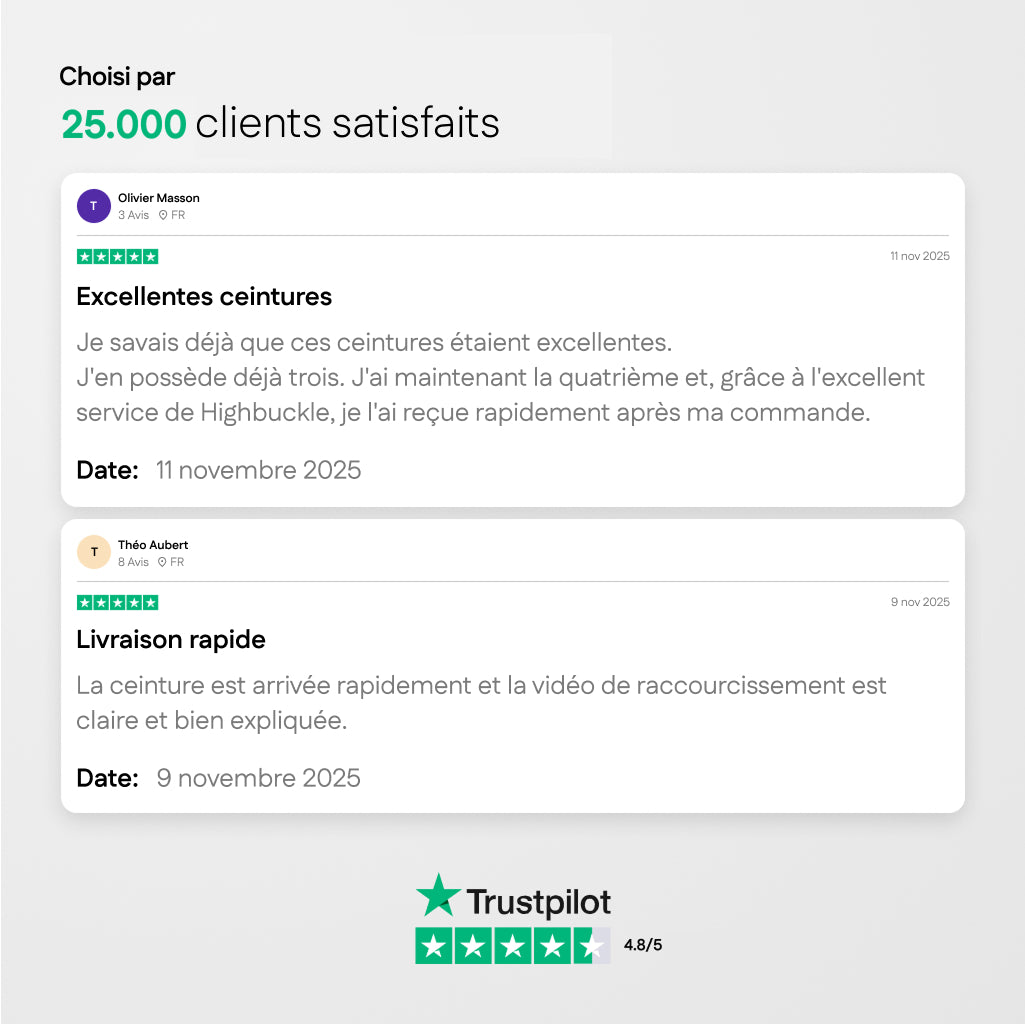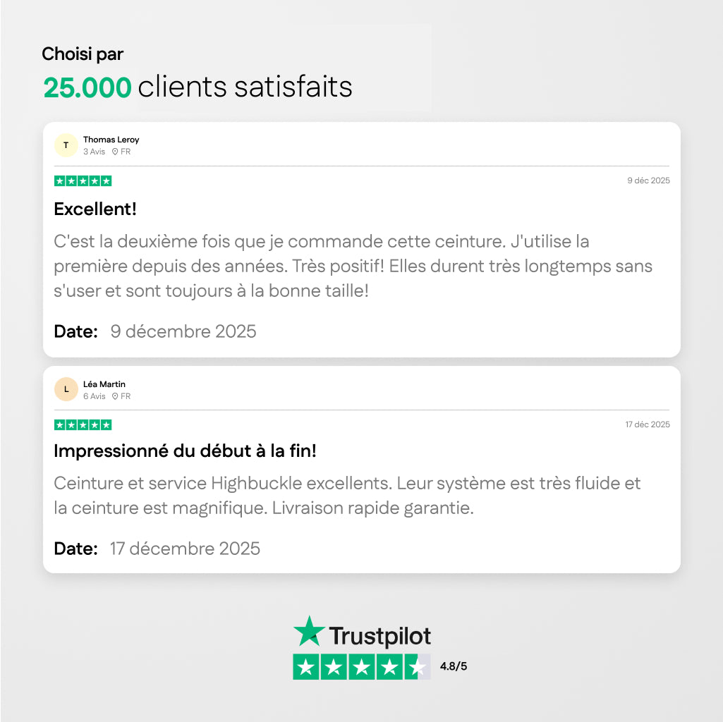 HIGHBUCKLE est vérifié sur une plateforme d’avis indépendante. Tous les avis sont disponibles sur notre site.